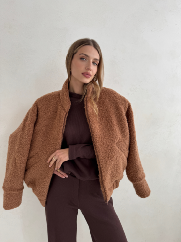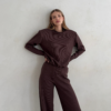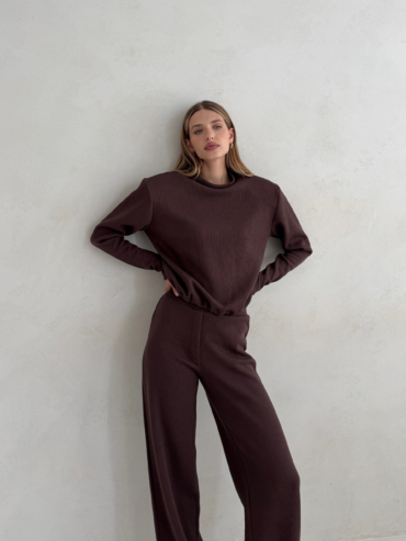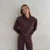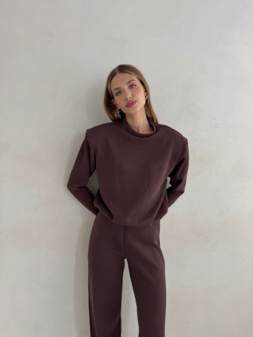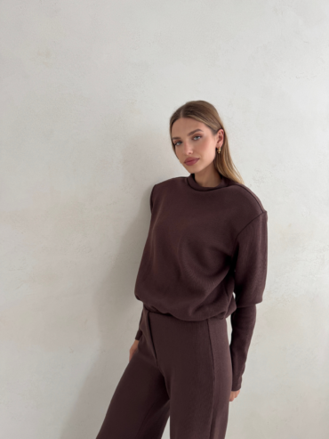Głęboki czekoladowy odcień nadaje całości lekkiego, jesiennego klimatu. Bluza doskonale komponuje się ze spodniami Megeve Chocolate, tworząc spójny i stylowy total look, ale równie dobrze wygląda zestawiona z jeansami, spódnicą czy jasnymi spodniami, przełamując klasykę subtelnym kontrastem.