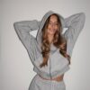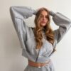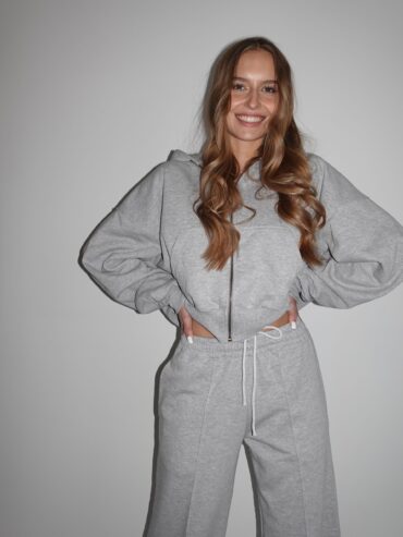 Na zdjęciu prezentowana jest bluza w  rozmiarze M oraz spodnie w rozmiarze S. Wzrost 174 cm.