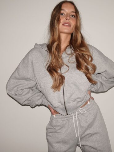 Sportowa bluza wykonana z wysokiej jakości bawełny o ponadczasowej formie. Klasyczny kolor nadaje jej uniwersalnego charakteru, który świetnie sprawdza się zarówno w codziennych, jak i bardziej cool stylizacjach. Bluza posiada zamek, na przodzie są dwie kieszenie oraz kaptur.