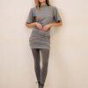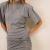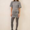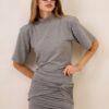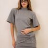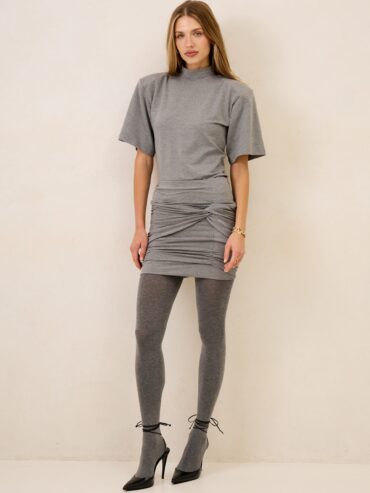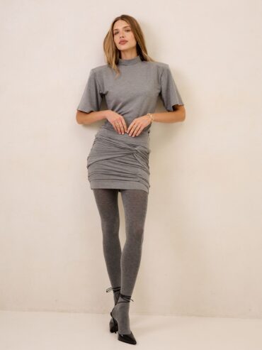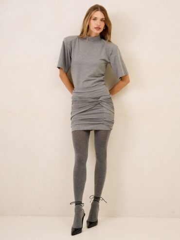Spódnica Dakota Grey to kobiecy i nowoczesny model, który pięknie podkreśla sylwetkę. Wykonana z podwójnej, marszczonej dzianiny, doskonale układa się na ciele, modelując talię i biodra.