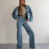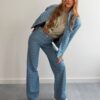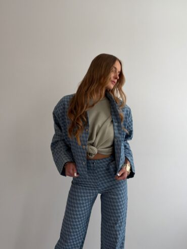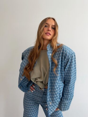 Stwórz spójny, modny komplet, łącząc spodnie z naszą jeansową kurtką bomber Lucy – razem tworzą efektowny total look w nowoczesnym wydaniu. Stylizację uzupełnij T-shirtem Houston Pistachio, który doda świeżości i podkreśli wiosenny klimat outfitu.