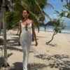 DESTINY to wyjątkowa, zmysłowa i ultrakobieca sukienka, która zachwyca! Długa, dopasowana sukienka wykonana z elastycznej, białej dzianiny, która doskonale podkreśla sylwetkę, optycznie ją wysmuklając i wydłużając. Charakterystycznym elementem sukienki jest efektowny dekolt z wycięciami i złotymi kołkami, który nadają sukience niepowtarzalny wygląd. Wiązane ramiączka, klasyczna długość do ziemi sprawiają, że sukienka jest stylowa i ponadczasowa. Z łatwością wystylizujesz ją zarówno ze szpilkami, jak i płaskim obuwiem, tworząc look idealnie dopasowany do sytuacji. Idealna zarówno na plażę, na codzień jak i na eleganckie wyjście.